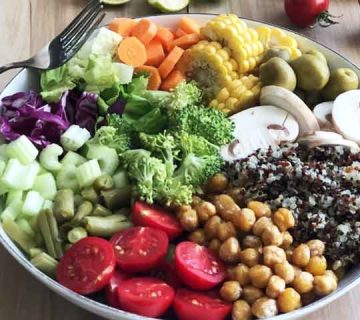 اگر می خواهید سالاد را به عنوان یک وعده غذایی رژیمی استفاده کنید حتماً یک جزء پروتئینی مثل باکویت به آن اضافه کنید.