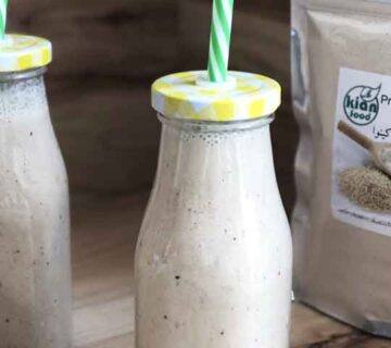 برای اینکه مغذی تر شود می تواند ار آرد کینوا یا همان پودر پروتئین کینوا استفاده کنید.