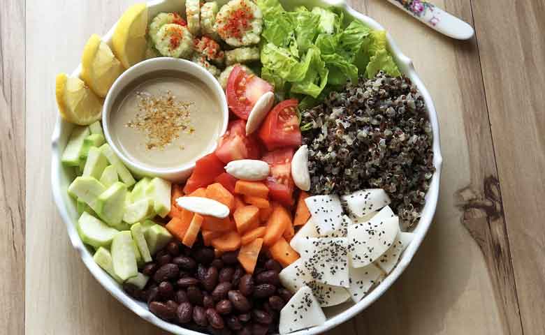 اگر سالاد را به عنوان ناهار یا شام انتخاب می کنید فراموش نکنید که یک جزء پروتئینی مثل کینوا یا لوبیا به آن اضافه کنید.